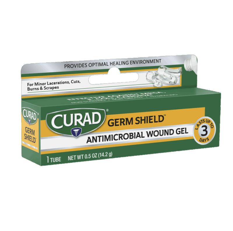 Curad germ shield gel also shows no signs of susceptibility to bacterial resistance and keeps working up to 3 days. That helps provide more germ protection with fewer applications.