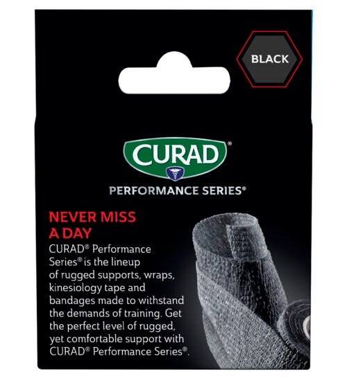 CURAD® Performance Series Self-adhering wrap helps active individuals and avid athletes alike get back to work or back in the game. It’s easy to tear and it will only stick to itself and doesn’t require potentially irritating tape or clips. It offers consistent, low-level compression that can cover many hard-to-treat body areas thanks to its thinness and elasticity.
