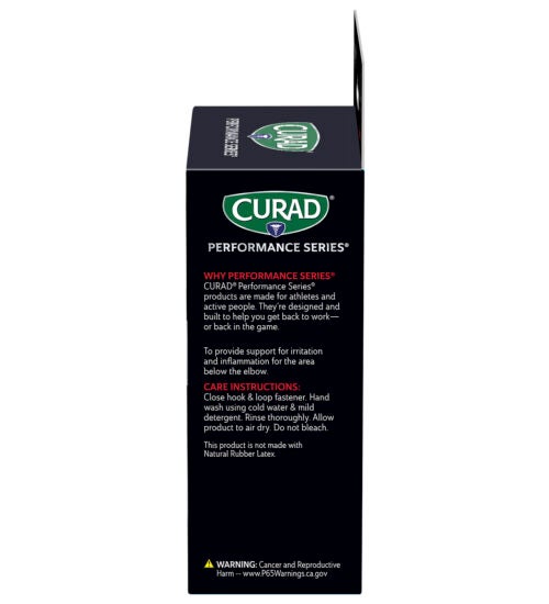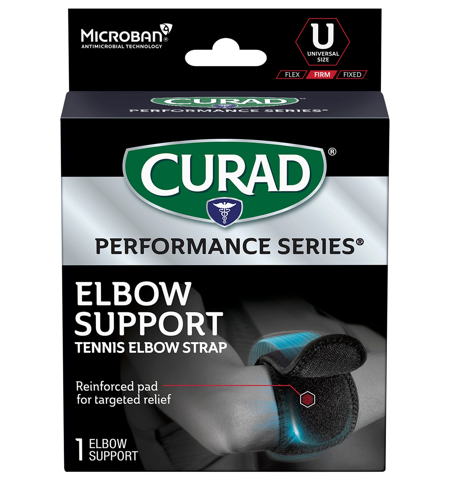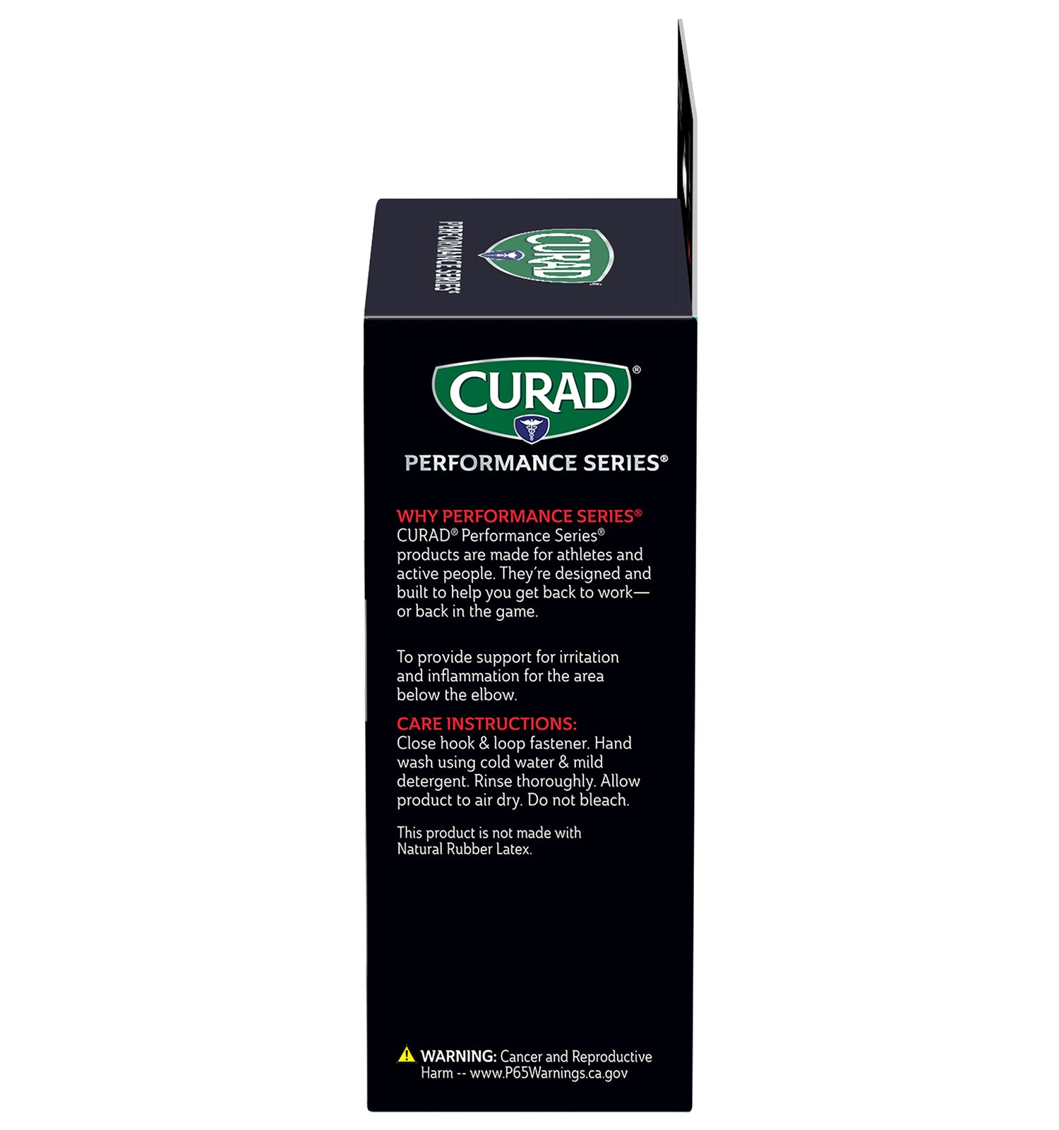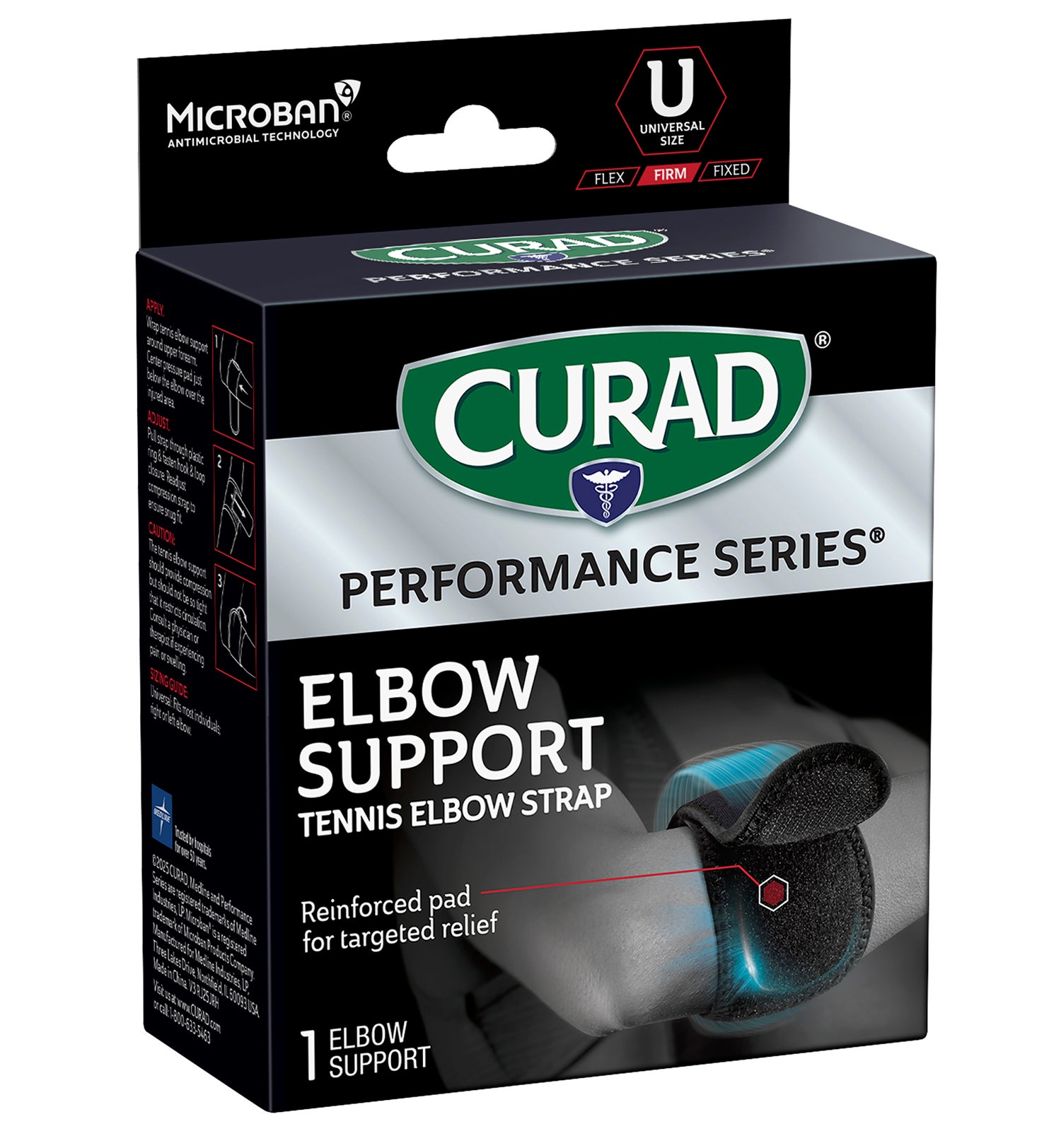 CURAD® Performance Series Elbow Support – Tennis Elbow – provides relief for pain due to repetitive motions of the wrist and arm. Ideal for athletes and active people, the Elbow Support is designed to help you get back to work or back in the game. It features a Tennis Elbow strap with a built-in reinforced compression pad for targeted relief. The pad also contains Microban® Antimicrobial Protection*, which keeps the product cleaner for longer by helping to prevent the growth of stain & odor causing bacteria on this product.