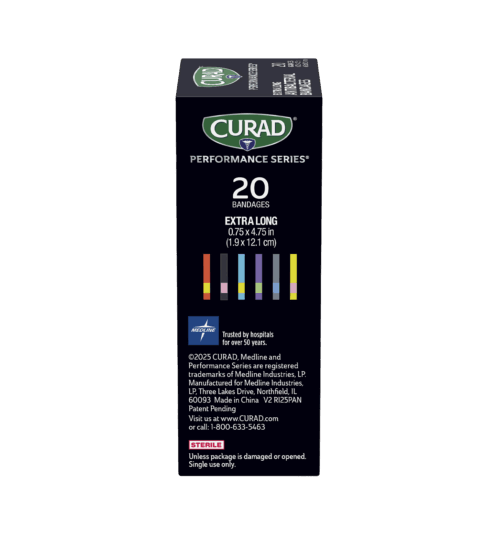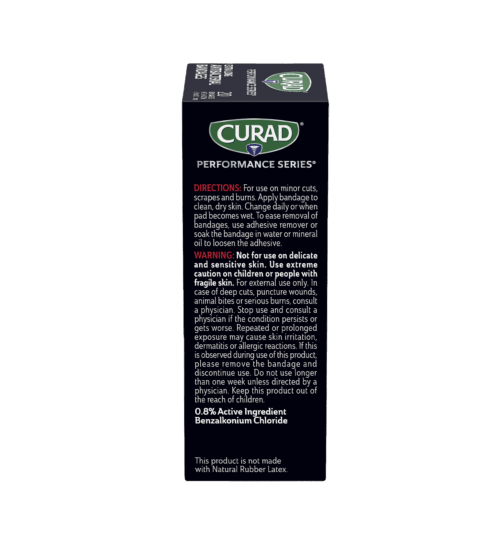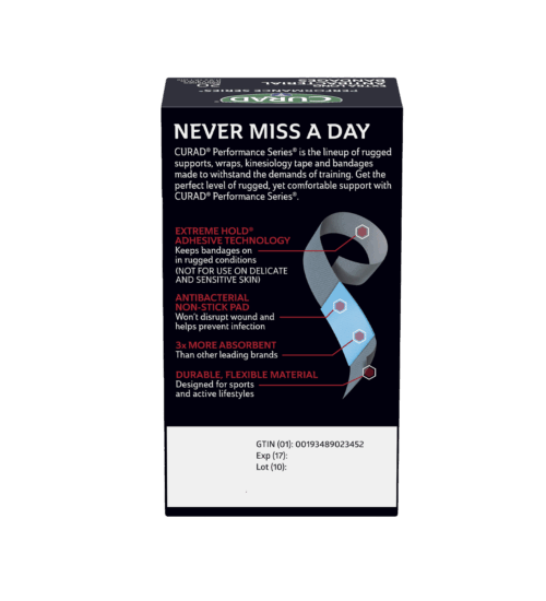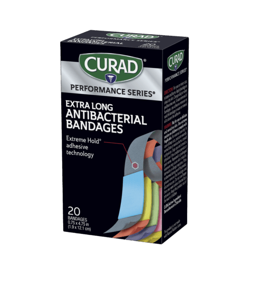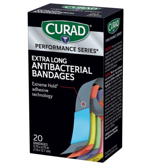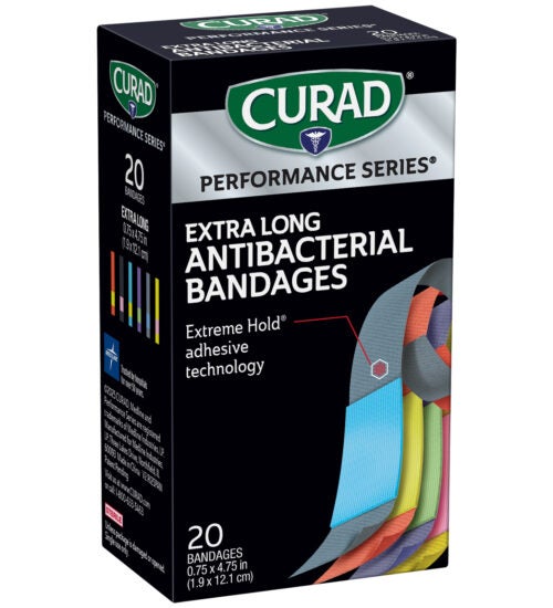 CURAD® Performance Series® bandages are designed for use in rugged conditions and are made for athletes and active people. They feature Extreme Hold® adhesive technology, which is designed to provide long-lasting protection. The heavy-duty fabric is also breathable and flexible. The antibacterial non-stick pad won’t disrupt your wound and helps to prevent infection.
