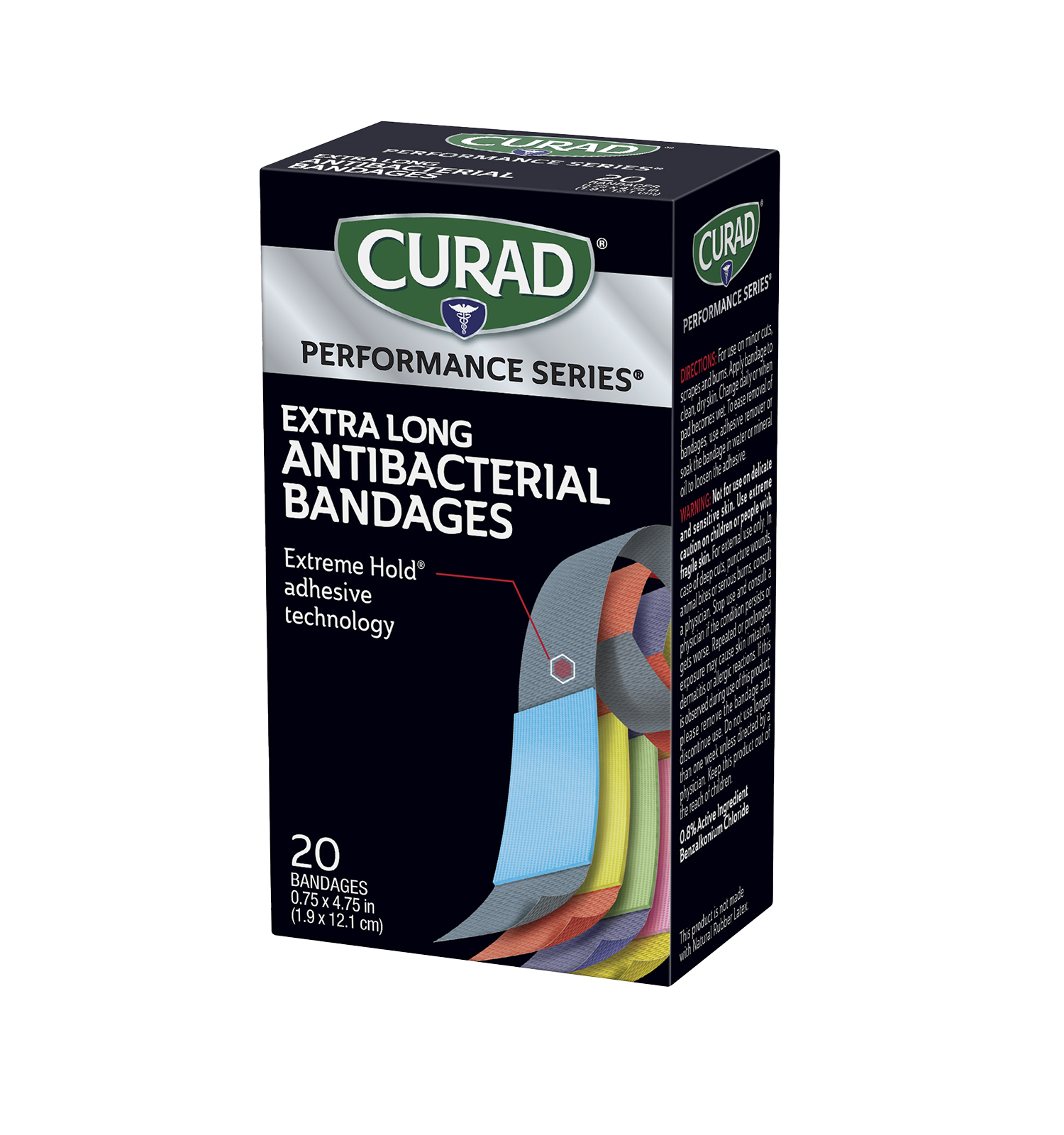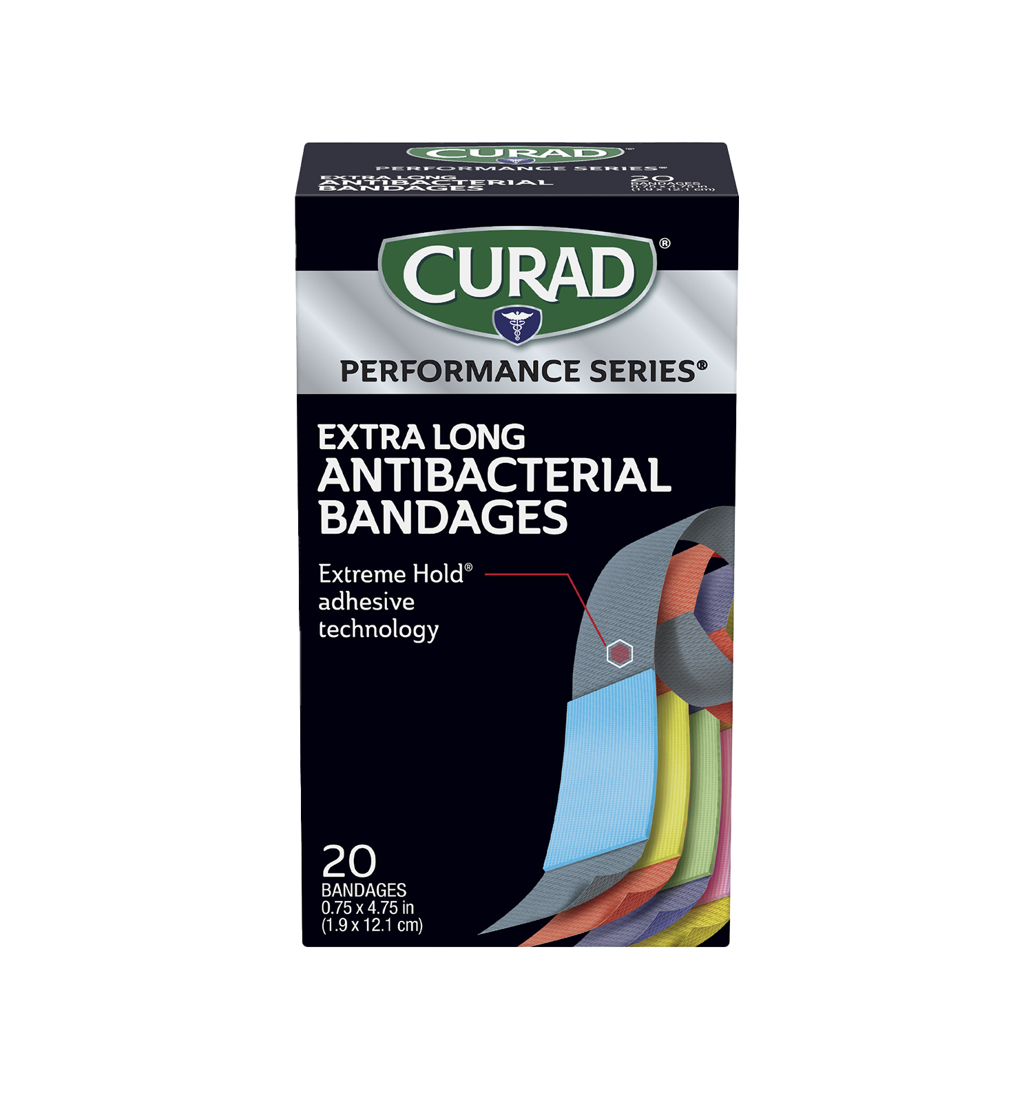 Curad Performance Series Extreme Hold Antibacterial Extra Long Adhesive Bandages, 20 count