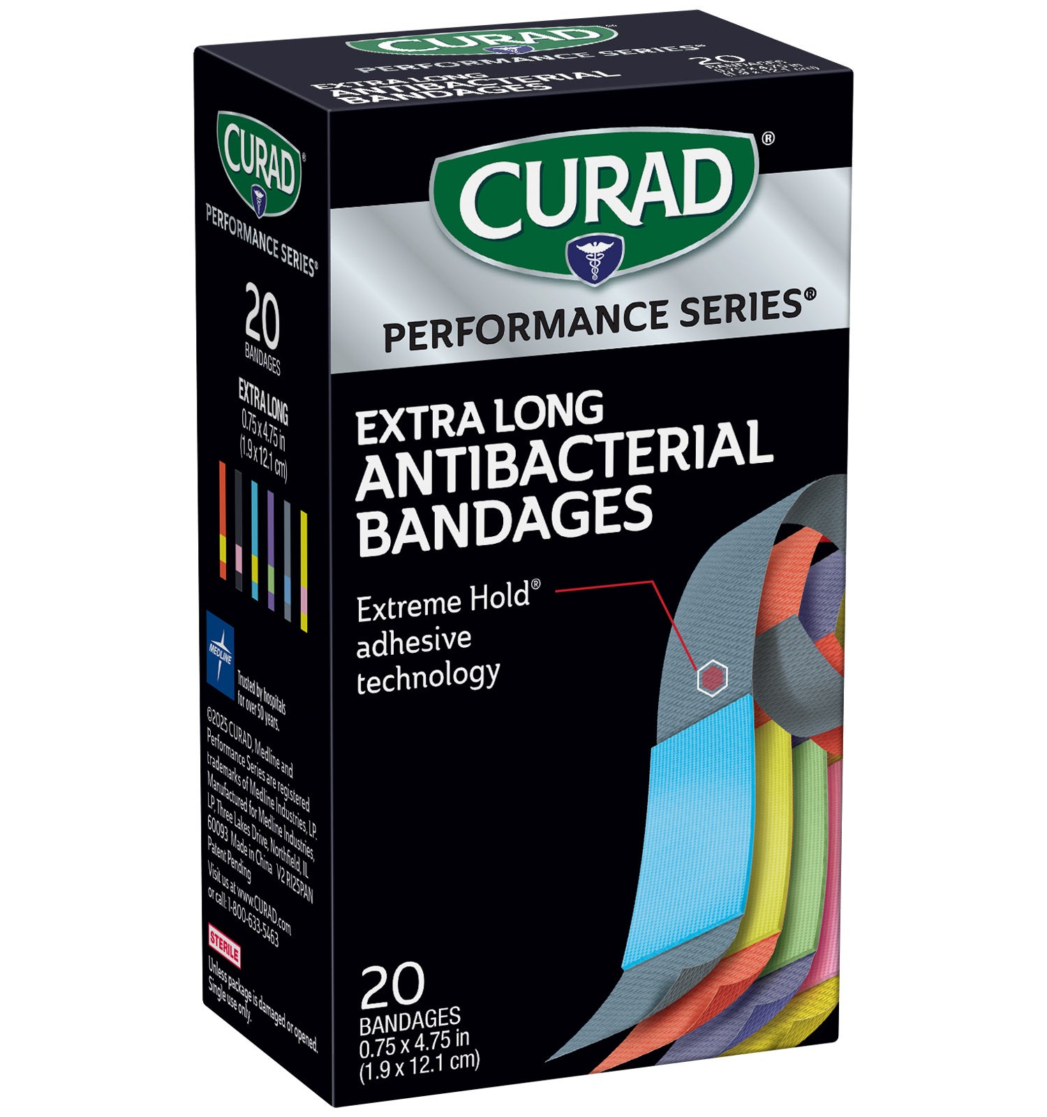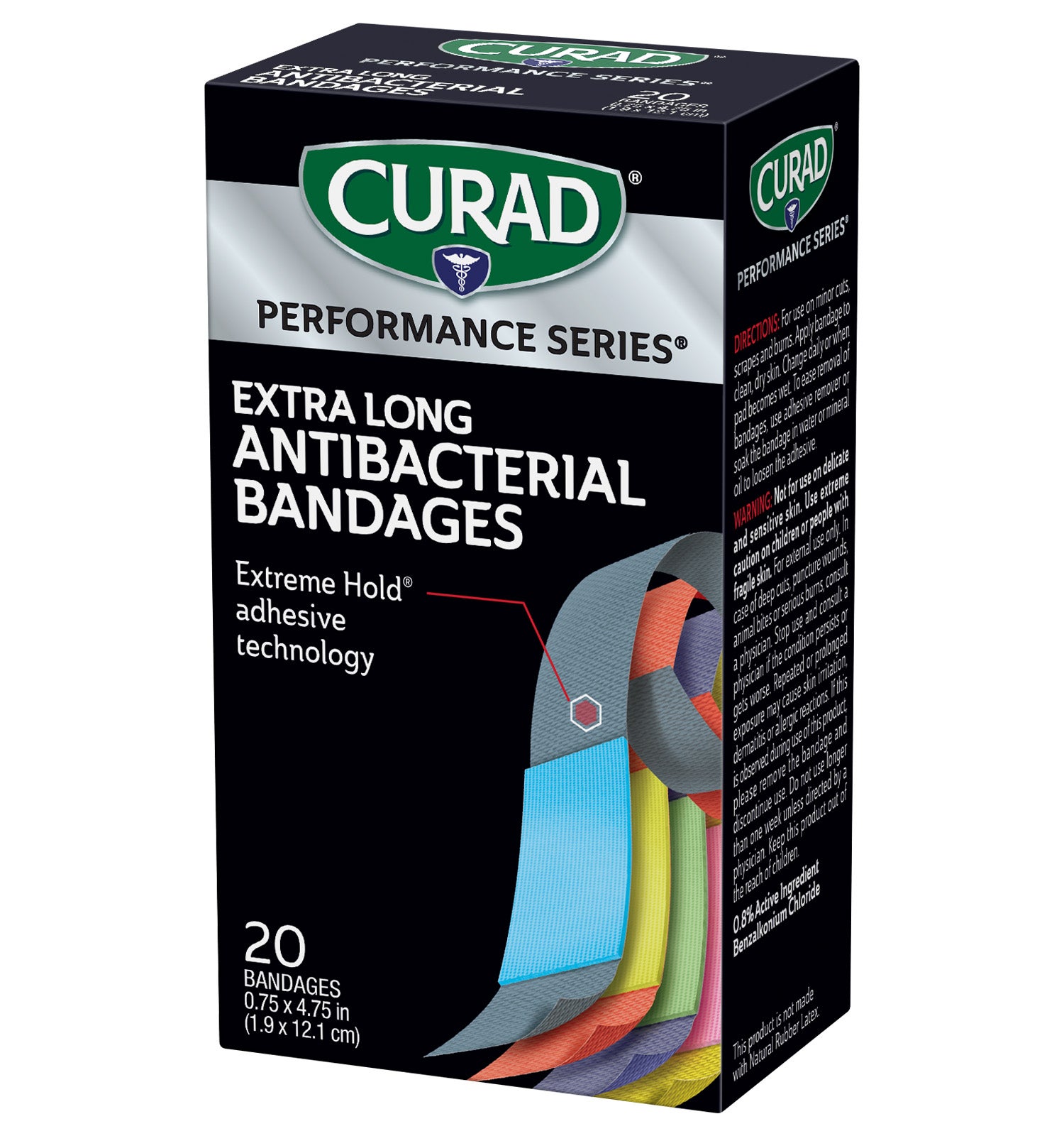 CURAD Performance Series Extreme Hold Antibacterial Extra Long Adhesive Bandages, 20 count