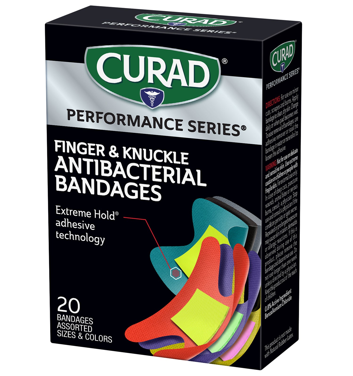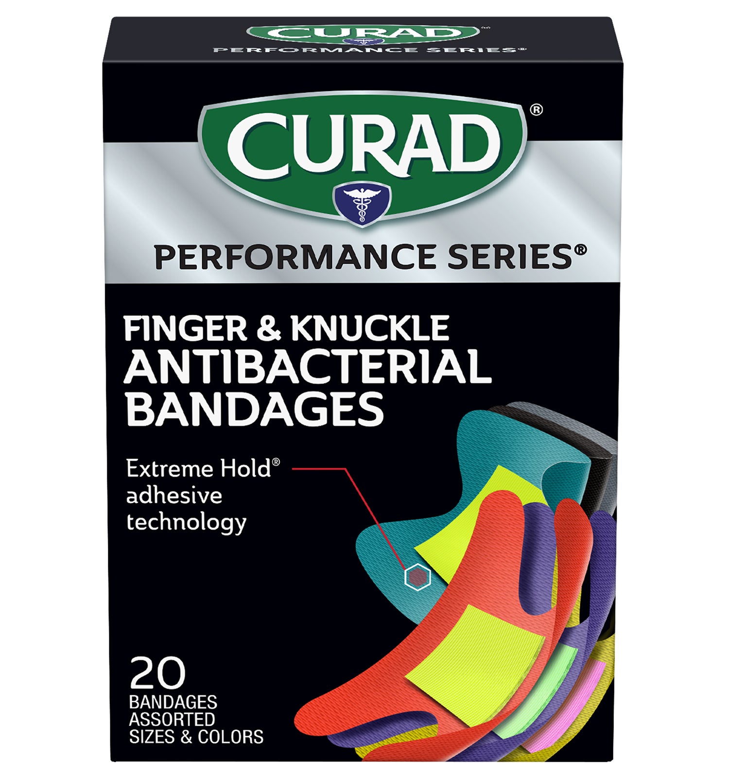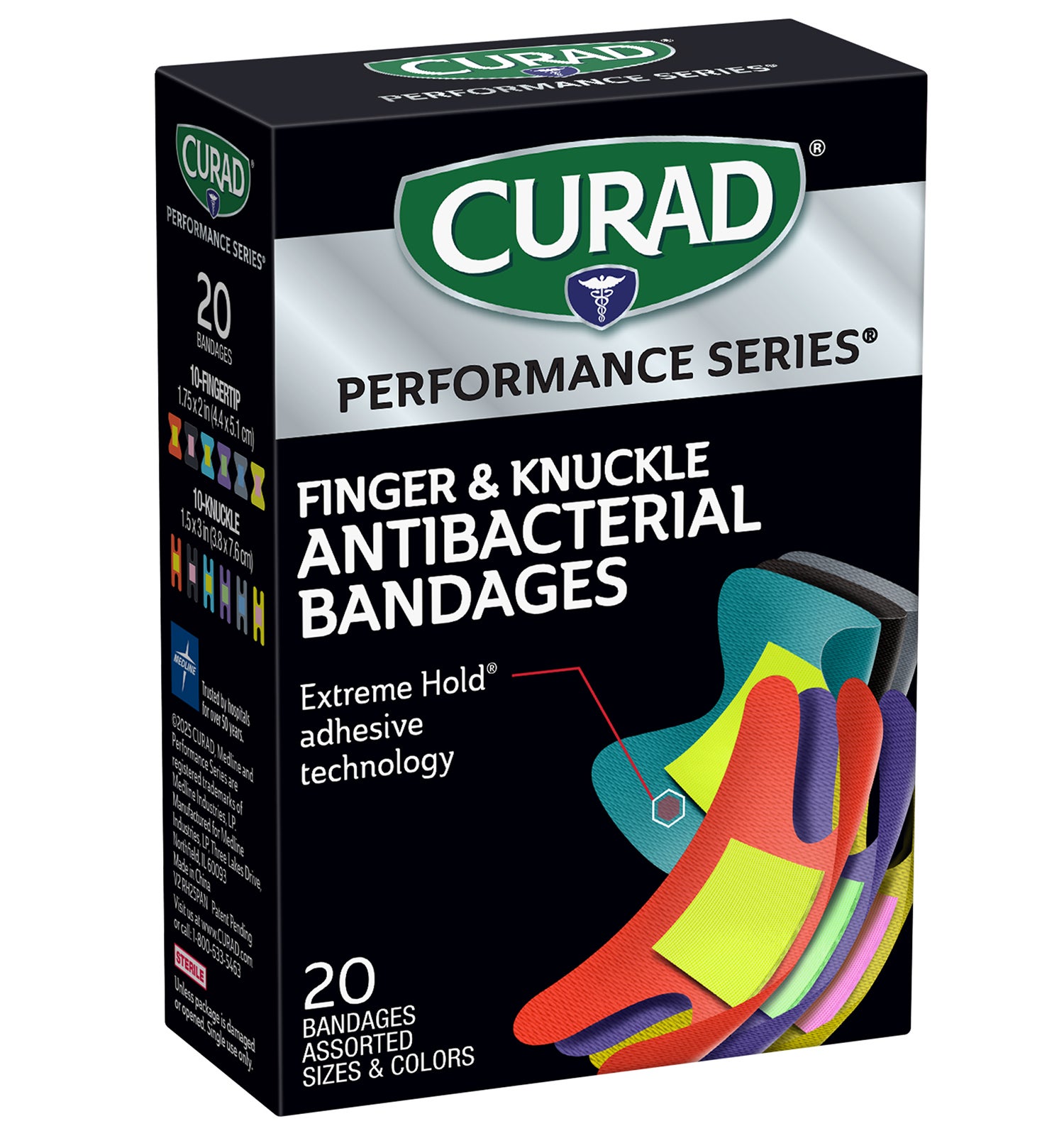 CURAD Performance Series Extreme Hold Antibacterial Finger & Knuckle Adhesive Bandages, 20 count