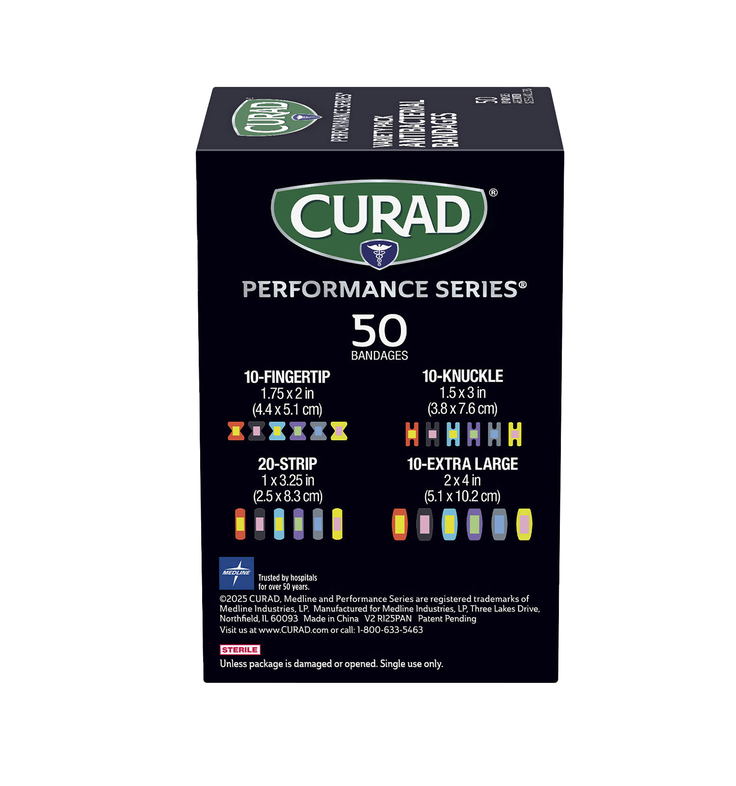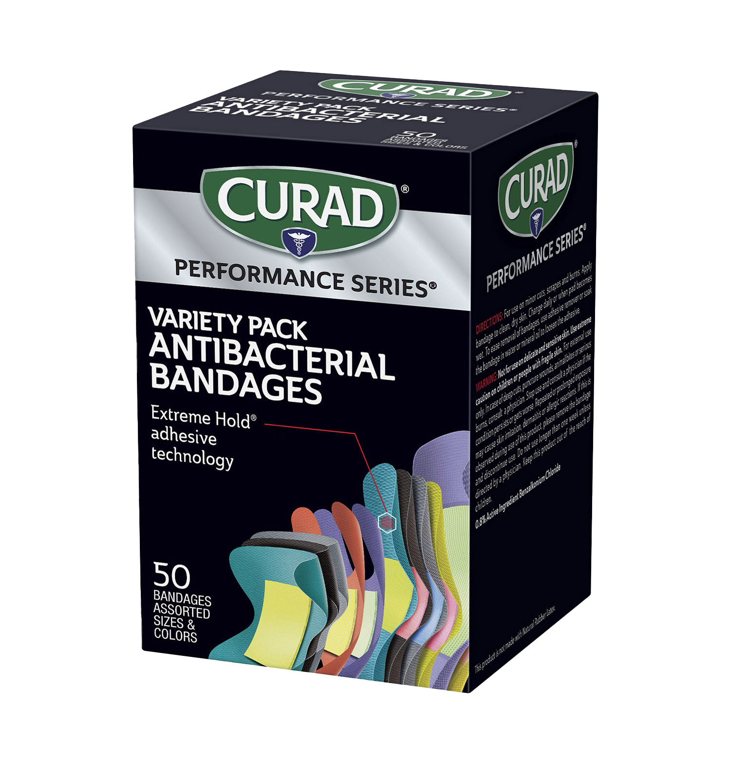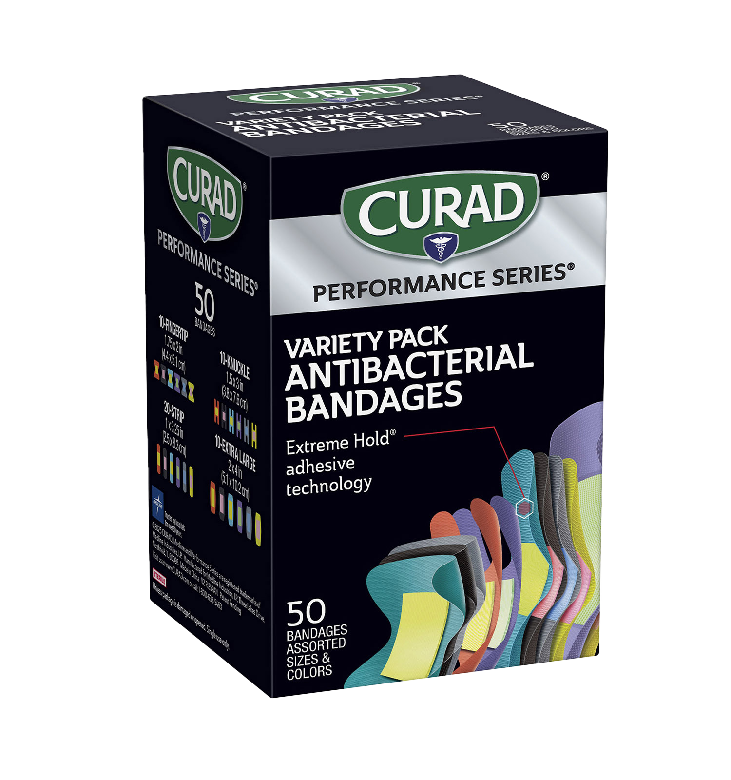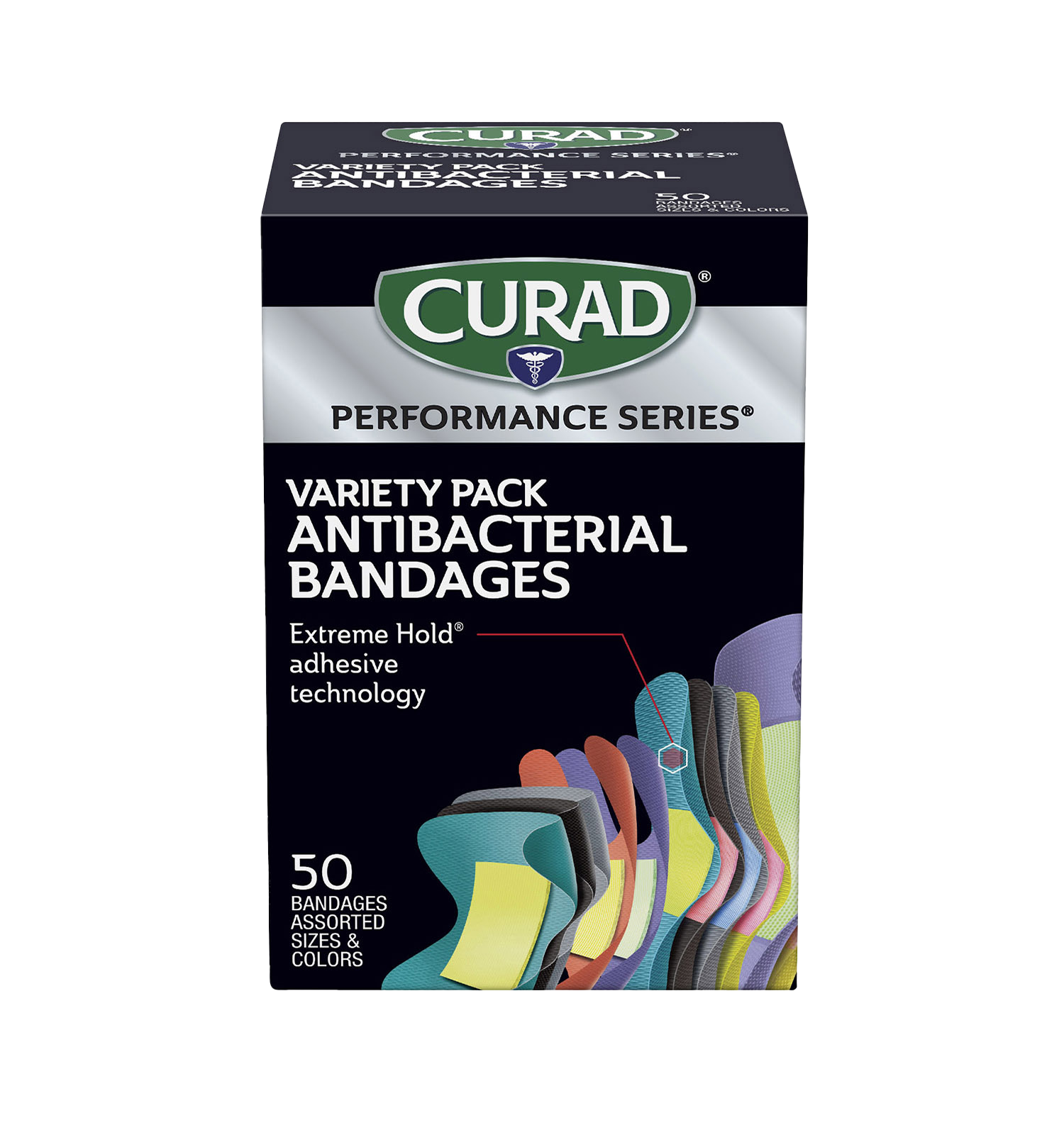 CURAD Performance Series Extreme Hold Antibacterial Variety Pack Adhesive Bandages, 50 count