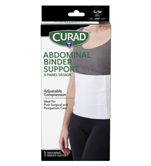 The CURAD Abdominal Binder Support features a 3-panel design that provides adjustable compression for weakened abdominal muscles, making it ideal for post-surgical or postpartum care following a Cesarean section. The elastic material and foam padding provides comfort but effective support during wear. The 9” tri-panel design minimizes rolling while providing a secure fit, and the hook-and-loop fastener allows for easy application and adjustments. Plus, this binder is not made with natural rubber latex, making it a safe choice for those with sensitivities. No matter if you’re recovering from surgery or seeking extra support, the CURAD Abdominal Binder is all you need for comfort and stability.
